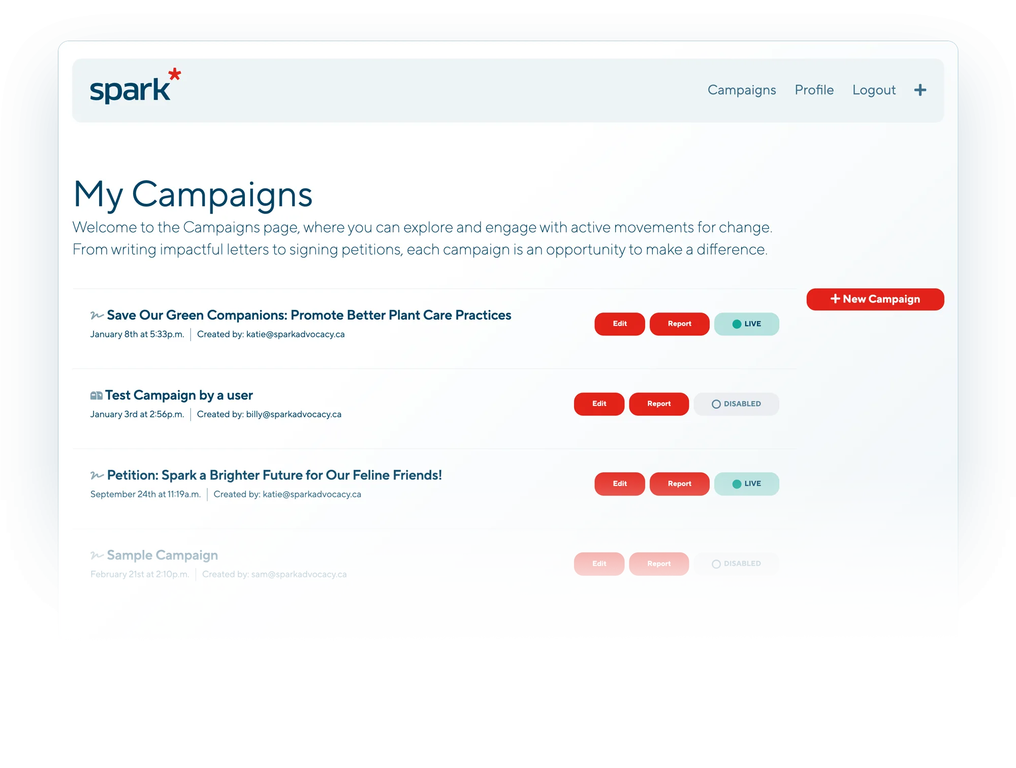 Measurement turns action into insight. spark*activation helps you understand how your letter campaigns and petitions are doing. Who’s engaging and what they are doing, all in real-time. Our reporting interface makes it easy to track submissions and export data for deeper analysis – all in one place.
